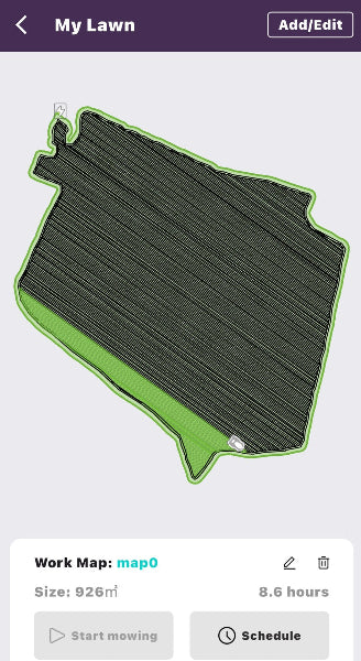 Tailor mowing height (2 to 9 cm), speed, schedule and direction for each area.